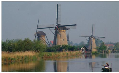 大不列顛島遙遙相望并構(gòu)成漏斗形尾部的地理特征,大西洋季風(fēng)從北海長驅(qū)直入,荷蘭正處風(fēng)帶要沖,長年受益,風(fēng)車也就應(yīng)運而生。